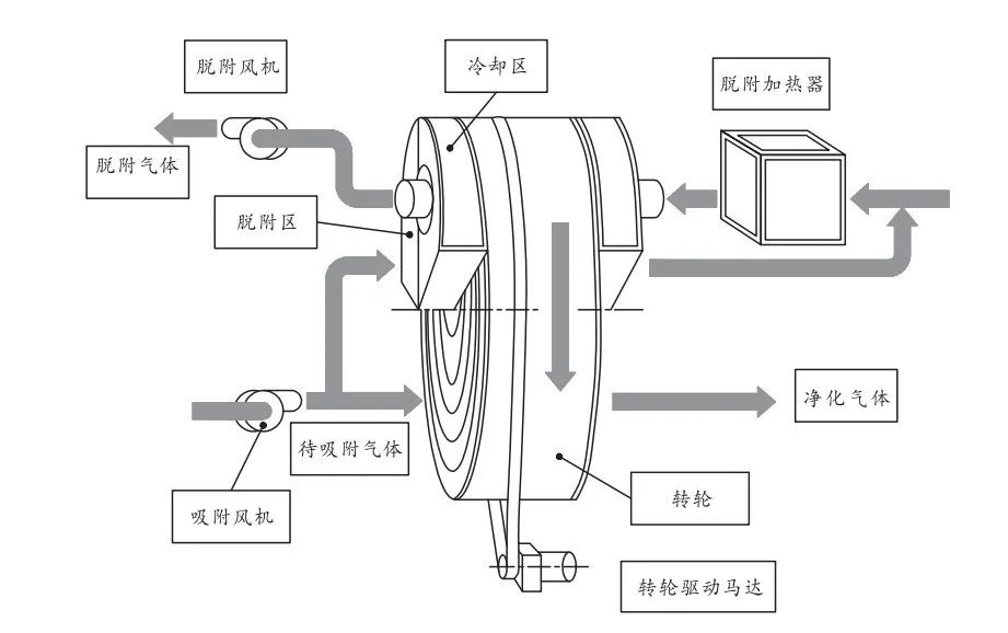 高温再生的温度也会影响高温脱附效果。若高温脱附温度选取过低,则高沸点物质仍无法有效脱除;若高温脱附温度选取过高,将对沸石分子筛的骨架结构产生一定的影响,从而降低其使用寿命。高温脱附温度宜选取300℃左右,并且,相应的沸石转轮内部配件均需采用可耐300℃高温的密封配件。
